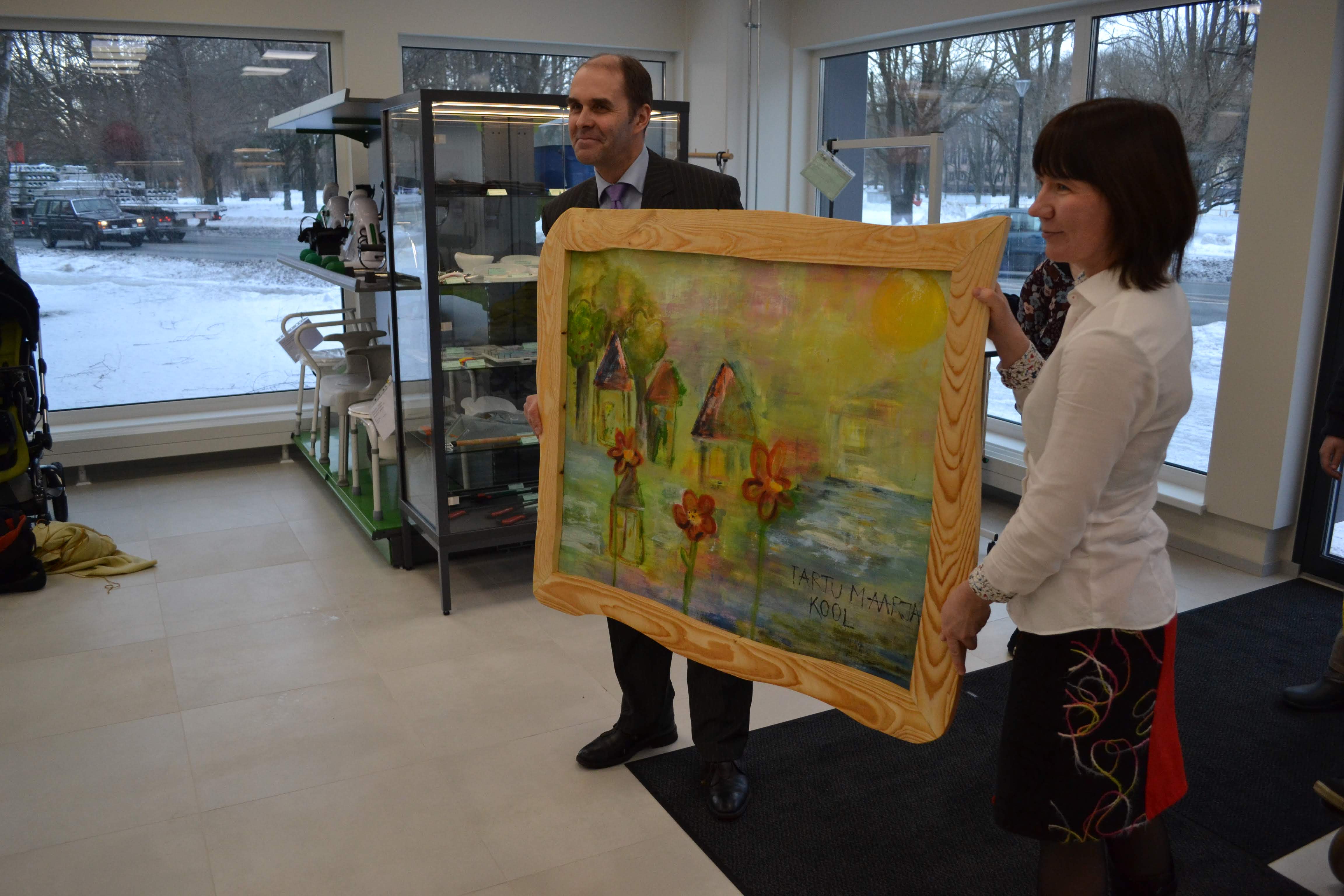 Maarja Kooli õpilased andsid täna Tartus Invaru abivahendikeskusele üle mitme kuu jooksul valminud ühismaali, mis hakkab kaunistama uue abivahendikeskuse seina ja rõõmustama selle külastajaid.
