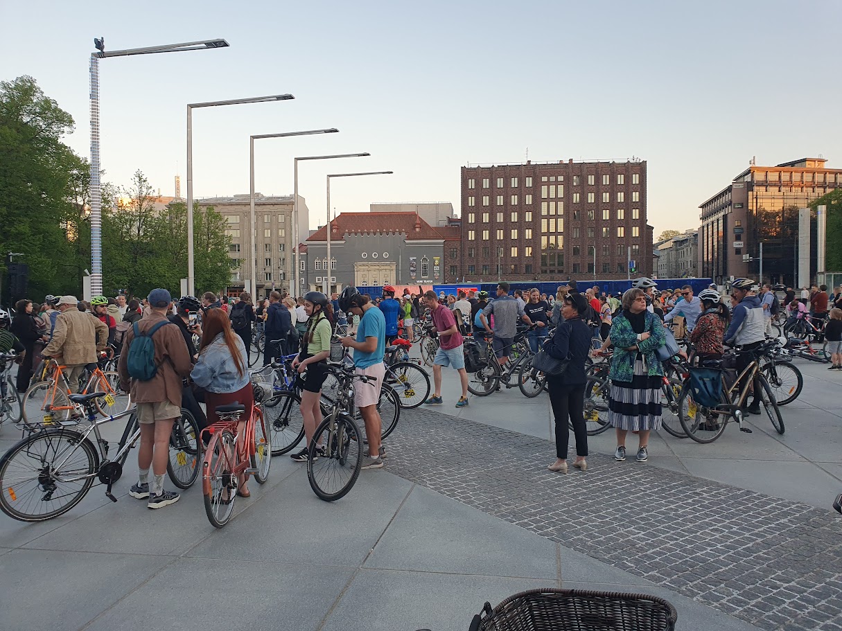 - Foto: Jalgratturid Vabaduse väljakul ootavad pikisilmi ülepääsu / Janek Jõgisaar, bioneer.ee